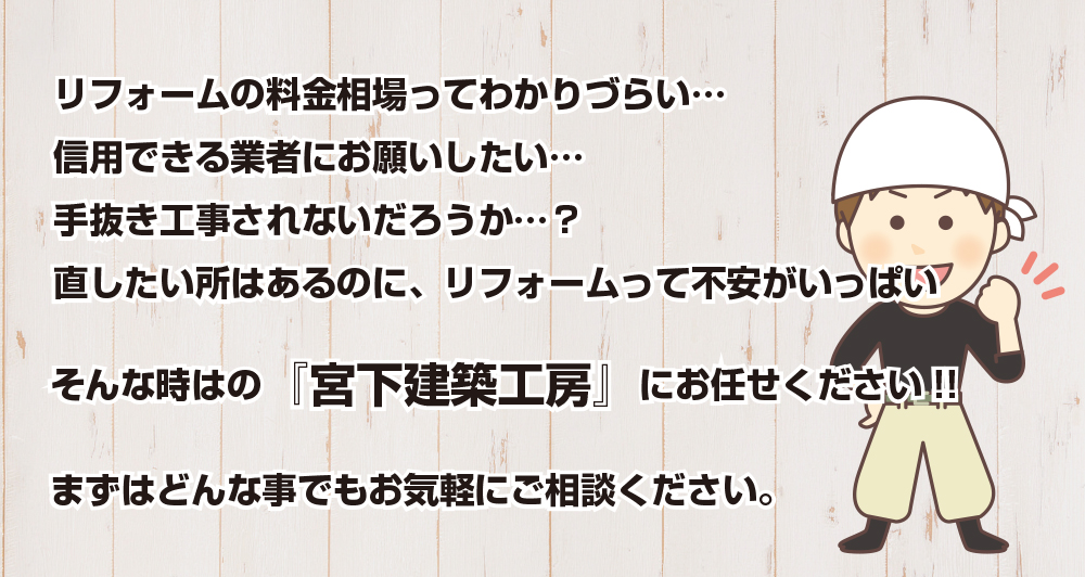 | 業務内容 | リフォーム・建築・設計・施工一式 |